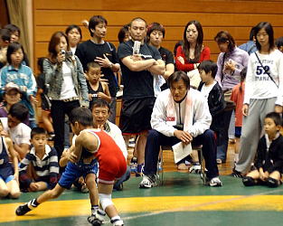 日本協会の木名瀬重夫女子専任コーチは、代々木ジュニア選手のコーチとして参加。