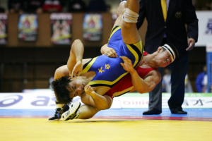 太田充洋(大分・津久見高教)を相手に迎えた決勝戦。第1ピリオドはグラウンドの防御からスタートしながら体を入れ替えて得意の俵返し(右写真)。しっかりと相手の体が返らずに1点に終わったが、このピリオドを奪い、第2ピリオドも、太田の体を今度は豪快な俵返しで垂直に落とし、8−0のテクニカルフォールで勝負を決めた。