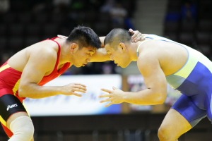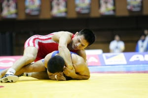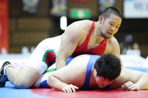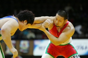 北京オリンピックの代表選考を兼ねた天皇杯全日本選手権は12月21日、東京・代々木第二体育館で開幕、8階級が行われ、男子グレコローマン66kg級の飯室雅規(自衛隊=右写真)が男子で大会史上6人目の8年連続優勝を達成した。