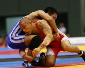 人気絶頂のプロ格闘家、山本“KID”徳郁選手の復帰参戦(フリースタイル60kg級)で、過去最高の観客とマスコミを集め、注目を浴びた昨年度の全日本選手権。その復帰第1戦の相手を務めた土田章博(自衛隊=左写真)が、11月23日に行われた全国社会人オープン選手権フリースタイル66kg級に出場し、3試合に勝って2位に躍進する活躍を見せた。
