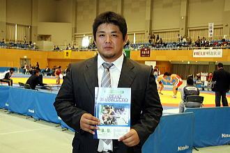 今年は中京学院大の鎌田学選手がアジア・ジュニア選手権フリースタイル74kg級で銀メダルを獲得。中津商高の山口剛選手(84kg級)が全国高校生グレコローマン選手権を含めて全国大会4冠を制覇するなど、“中津川レスラー”が大活躍。今回の全日本大学選手権を切り盛りした中京学院大の馬渕賢司監督(右上写真)は「中津川というより、岐阜県のレスリングを活性化させたい」と張り切る。