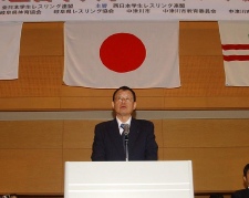 岐阜県レスリング協会の丸山充信会長のあいさつ。 |