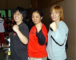 香川・高松クラブの山下(旧姓麻生)和代さんと、世界選手権への出場経験もある石川・金沢ジュニアクラブの川井(旧姓小滝)初江さん(右写真=左から山下さん、川井さん、成国さん)。ともに1980年代後半から90年代前半の女子レスリングの初期に活躍し、日本の女子レスリングの基礎を築いた功労者だ。