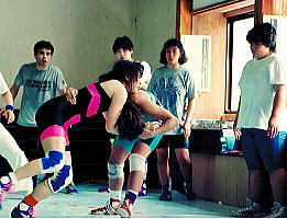 最初からコーチだったわけではなく、1年間は保護者としてクラブに出入りしていただけだった。そのうちに、レスリング選手だった血が騒いだ。コーチの声がかかり、レスリングシューズを履いてマットに上がることになって、「とてもうれしかったです」と振り返る。「今から思うと、もっと選手を続ければよかった、という気持ちがあるんです」。そんな後悔が、日々の熱心な指導へとつながっていった(左写真:1991年に新潟県の“虎の穴”での全日本合宿に参加中の川井さん=右から2番目)。