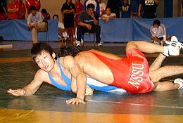 峯村は11日前にも体重をリミットに落として秋田国体に参戦。決勝戦は“ミスター国体”の村田知也(三重・久居高教)と戦った。そこで峯村はまたも“定位置”の2位に終わっている。第1ピリオドは先制され、後がない第2ピリオド。試合を優位に進め、第3ピリオドで勝負をつけようと気持ちがゆるんだ残り1秒。「大丈夫だとちょっと油断してしまいました」と村田の意地のガッツレンチに屈した。8月のインカレ優勝を経験した直後の2位。ベテラン村田に善戦したという気持ちよりも悔しさだけが残ってしまった。