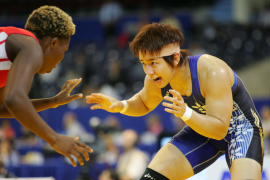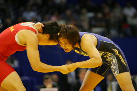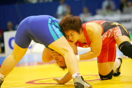 《経過》第1ピリオド、やや慎重になった伊調だが、1分45秒、回り込んでバックを奪う。またさきは決まらなかったが、1−0。第2ピリオドはタックルをつぶして1−0とした伊調が、ガッツレンチで2点を加え3−0とした。