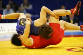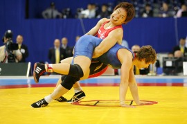 《経過》第1ピリオドの前半は慎重だったが、伊調が中盤以降ににタックルを決めていく。3度目のタックルのあと、がっちりと押さえ込み、7−0となったあとフォールした。