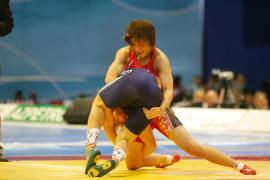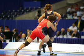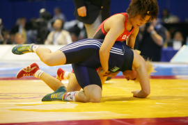 《経過》第1ピリオド前半、伊調は片脚を取られてテークダウンを奪われ2失点。しかし、バックを取り返して1−2へ。1分17秒に2点のタックルを決め、終了間際にも1点を加えて4−2とした。第2ピリオドは40秒にタックルを決め、1分40秒、1分55秒にもタックルで1点ずつ加えた。