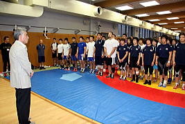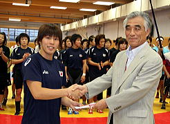 日本協会の福田富昭会長とJOC青木剛・強化副本部長が全日本チームを激励【2007年9月9日】