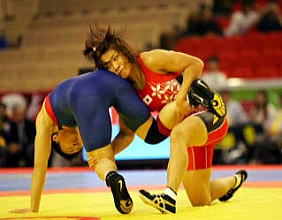 アテネ五輪を含めて5度世界の最高峰に輝いている選手の余裕だろうか。女子63kg級の伊調馨(ALSOK綜合警備保障=左写真)は、今年の世界選手権の目標に、日本協会が金メダル獲得に対して与える「北京五輪の出場権獲得」のほか、「姉の千春(48kg級)に優勝させること」を掲げた。姉の階級に、出産のために昨年は出場しなかったアテネ五輪金メダリストのイリナ・メルニク(ウクライナ)が出場することが確実になり、全面的にバックアップ。自らの練習の合間に、メルニクになり切って姉の練習相手を務めている。