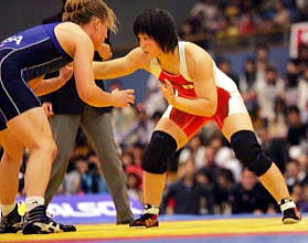世界にその強さをとどろかせている日本の女子レスリングだが、最近、ただ1階級世界一が生まれていないのが67kg級だ。階級区分が変わった2002年からのみならず、最重量級の次の階級として考えると、金メダルは1993年70kg級の浦野弥生以来見離されている。今年、その階級に挑むのが、昨年の世界ジュニア・チャンピオンの井上佳子(中京女大=左写真)だ。