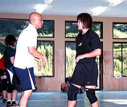 実際には、2005年5月に名古屋で行われたワールドカップの試合後、「緊張してしまって、納得できる試合ができなかった」と振り返っているのだが、その時に闘った世界3位のカティ・ダウニング(米国=右写真の左)に対し、「世界3位って、こんなもんか」とも話している。