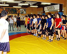 48kg級の伊調千春、55kg級の吉田沙保里、63kg級の伊調馨のALSOK綜合警備保障の3選手は、北海道であった自社の壮行会に出席したため、前日からの合宿合流。伊調馨は急性へんとう腺炎にかかったりして、いずれも練習にブランクあったものの、追い込む練習のできる最後の合宿ということで、この日は気合を入れた練習を展開。日本代表は「けがもなく、いい調整ができています」と口をそろえた。
