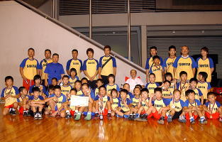 昨年の大会で「6年連続20度目の優勝」を遂げた“不動の王者”吹田市民教室(大阪)が、SUKOBURUゴールドキッズ(東京)に30点の差をつけられ、2位に沈んだ。押立吉男代表は「敗因は、ゴールドキッズが強かったことに尽きます。ここまでチームを強くしたことに敬意を表します」と、初優勝を飾った東京の新興クラブの躍進を祝福した(右写真=押立代表と参加選手たち)。