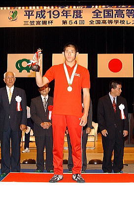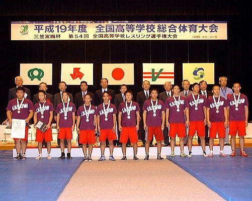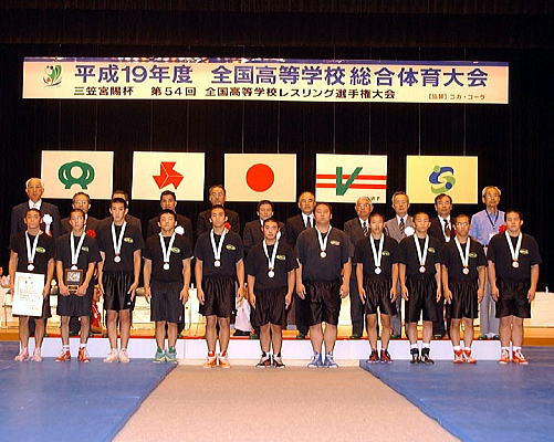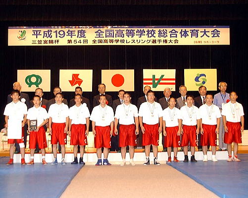 2007青春・佐賀総体、第54回全国高校レスリング選手権第2日は8月3日、佐賀市の諸富文化体育館で、学校対抗戦の決勝までが行われ、決勝は春の全国高校選抜大会決勝と同じ霞ヶ浦(茨城)と秋田商(秋田)が対戦。秋田商がチームスコア2−2から2連勝し、最後は4−3で勝ち、昨年に続いて2年連続3度目の優勝を達成した。