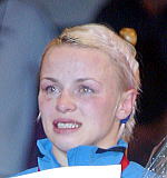 本ホームページの英語ページを執筆しているチェコ・プラハ在住のビル・メイ記者(前日本協会広報委員、前国士大コーチ)の得た情報によると、アテネ五輪の女子48kg級で金メダルを取り、出産のため昨年は戦列を離れたイリナ・メルニク(25歳、ウクライナ=右写真)がマットに戻り、今年の世界選手権と来年の北京オリンピックを目指してかなりハードな練習を積んでいるという。