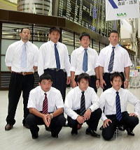フリースタイルのチーム(左写真)はグレコローマン・チームから約2時間遅れで成田空港を出発した。これまで海外では今ひとつ実力を発揮できていない60s級の湯元健一(日体大助手)は「菅平の合宿で両脚タックルが大分決まるようになってきた。今回はとにかく結果にこだわりたい。目標は金メダルです」とV宣言。ひざのけがのため大事をとって遠征を取りやめた55kg級の松永共広(ALSOK綜合警備保障)に代わって遠征に参加する双子の弟の進一(自衛隊)も「自分の実力を試したい」とメダル獲得に意欲を見せた。