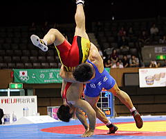 鶴巻 アテネ五輪後の大きなルール改正後、グレコローマンは何度も小さな修正がありました。以前のクロスボディでしたらリフト技をかけやすかったんですけど、最新のルールだと、ちょっと上げづらいです。汗をかいてきたら特に。