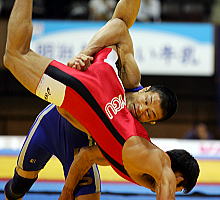 アテネ五輪男子フリースタイル60kg級銅メダリスト、井上謙二(自衛隊=左写真)。故障個所のオーバーホールを経て昨年末に戦線に復帰。ことし1月の天皇杯全日本選手権で2位。そして3月のヤシャ・ドク国際大会(トルコ)では全日本王者の湯元健一(現日体大助手)を破り、順調に力を戻して五輪連続出場の可能性が見えてきた。