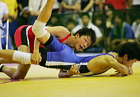 日本の高校レスリング界にさん然と輝く金字塔を打ち立て、今も発展し続ける霞ヶ浦高校。その霞ヶ浦高が初めて日本一に輝いた時のメンバーの一人、山下忍さんが率いる高松クラブ所属の鴨居正和(香川・紫雲3年)が、男子47kg級を制した。香川県からは17年ぶりの優勝。時に霞ヶ浦高校へも合宿に行く努力が実った。
