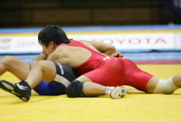 史上最大の“戦国階級”になったフリースタイル60kg級の今年の世界選手権代表を勝ち取ったのは、全日本選手権覇者の湯元健一(日体大助手)だった。しかし、その湯元も決勝戦で大沢茂樹(山梨学院大)に不覚を喫し、プレーオフで世界代表に返り咲くという内容。評判通りの激戦階級だった。