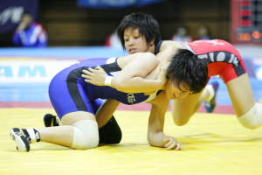 | 【51kg級プレーオフ】坂本日登美(赤)が快勝し、世界V5を目指す、 | 【59kg級プレーオフ】正田絢子(赤)が接戦を勝つ。4度目の世界一へ挑む。 | 【67kg級プレーオフ】井上佳子(赤)が勝ち、世界選手権へ初出場。 |