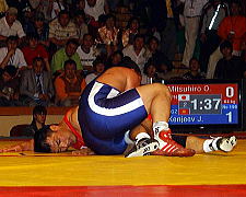 《経過》第1、2ピリオドともスタンド戦は0−0で、グラウンド戦も両者技が決まらず。ともにラストポイントを取ったイランの手が上がった。