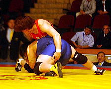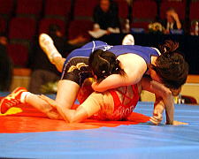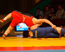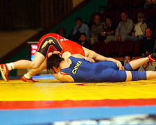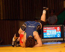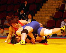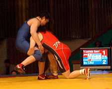 72kg級の浜口京子(ジャパンビバレッジ)は、1回戦でフォール勝ちしたあと、準決勝で2連敗中のアテネ五輪金メダリストの王旭(ワン・シュ=中国)と対戦。ピリオドスコア1−1のあとの第3ピリオド、コイントスで負けて苦しい展開となったが、粘って逆に1点を獲得。決勝進出を決めた。決勝は昨年3位のオルガ・ジャニベコバ(カザフスタン)相手に2−1で勝ち、昨年に続いて優勝した。