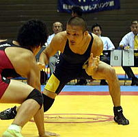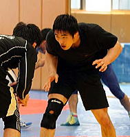 今年の拓大は中量級の藤本と米満(下写真)の白星は計算がつく。残り2つをどこで取るかが課題だ。120kg級には中村淳志(2006年グレコ学生2位)の存在も大きいが、アップまで勝負をもつれさせたくはない。