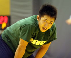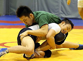 「稲葉以外の中軽量級で1つ取れるかがカギ」(佐藤コーチ)。この期待のほこ先は、66kg級の細越孝紀(3年、青森・光星学院高卒=左写真)に向けられている。レスリングのセンスは光るものを持っているが、チーム内のあだ名は、なんと「練習チャンピオン」ならぬ「練習番長」−! 「自分の作戦がはまらないと頭が真っ白になってしまう」(本人談)そうで、試合では各下の選手にも負けてしまうことがあるという。