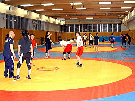 激戦の11日後ということで、ペースはやや落とした練習で、48kg級の伊調千春と63kg級の伊調馨(ともにALSOK綜合警備保障)はけがの治療のため別メニューでの練習。しかし、アジア選手権に初出場となる51kg級の柴田瑞穂や67kg級の新海真美(ともに中京女大)、初めて全日本合宿に参加した48kg級の三村冬子(京都・網野高)ら若い選手も多く参加し、熱のこもった練習が行われた。