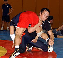 しかし、来月にキルギスタンで行われるアジア選手権への出場の機会が舞い込み、これを受けた。久しぶりの日本代表チームとしての遠征。「これまでに出たアジア選手権は、常にメダルを取っていた(03年=銀、04年=金、05年=銅)。メダルを逃したくない」。アテネ五輪の準々決勝で悔しい逆転負けを喫したレオニド・スピリドノフ(カザフスタン=左写真)や、2005年アジア選手権準決勝で敗れたドーハ・アジア大会王者の白鎮国(韓国)の顔が脳裏に浮かぶと、1年以上忘れていた緊張感に襲われる。