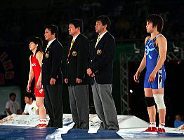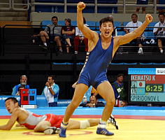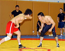 男子フリースタイル66kg級の2003年世界銅メダリスト、池松和彦(K−POWERS=右写真)も、そんなエアポケットに入った選手だ。アテネ五輪の翌年もアジア選手権と世界選手権の日本代表権を獲得し、大学院生としてユニバーシアードの出場も果たした。しかし、アテネ五輪でのメダル獲得も期待された時の勢いは感じられなかった。アジア選手権は3位と順位を落とし、世界選手権も2回戦敗退に終わった。ユニバーシアードは初戦敗退だ。