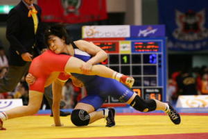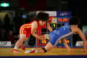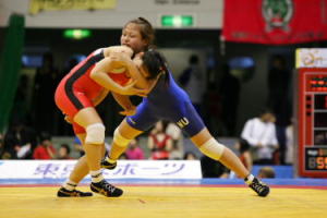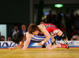 《経過》第1ピリオドの中盤まで様子をうかがった吉田は、ここで高速タックルを決め、腕を取ってフォールを狙う。惜しくも逃げられたが4−0へ。第2ピリオド、開始早々に正面タックルで相手を背中からマットに落とし、ニアフォールで4−0へ。中盤にもくぐりタックルから押さえ込み、8−0となって試合終了。