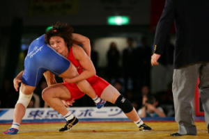 《経過》第1ピリオド、なかなかポイントの取れない両者だが、終了間際、伊調が腕取りで正田の体勢を崩し、足首をすくうようなタックルで貴重な1点を獲得。第2ピリオドは0−0のあと、コイントスで勝った伊調がテークダウンを決めた。