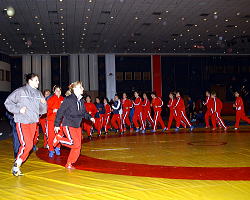 | 呉越同舟でしのぎをけずる松永(右)と田岡。結果を出すのは? | 全日本王者として初の遠征に臨んだ鈴木。結果を出せるか。 | トルコの女子選手。ブルガリアやモンゴルを迎え撃つ。 |
