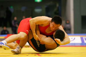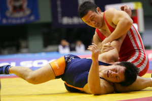 決勝の第3ピリオドは、磯川のタックルを鈴木がカウンターで2度返して2−0。2度目はフルネルソンを仕掛け、反対側に返してポイントを加えたあと、フォールへ持ち込んだ。 |