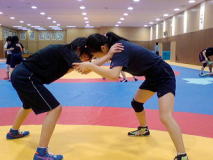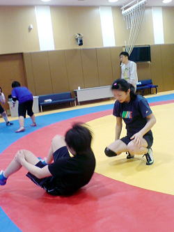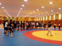 女子は、高校生で全日本チャンピオンに輝いた51kg級の堀内優(京都・網野高)を含めたジュニア世代の選手約50人(通い選手も含む)が東京・ナショナルトレーニングセンター(NTC)に集まり、栄和人女子強化委員長(中京女大教)ら再任・新任の強化委員の指導を受けた(下写真)。「ロンドン五輪へ向けて若手の底上げの合宿」(栄強化委員長)という。合宿は27日まで。