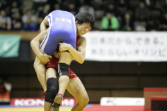 男子グレコローマンも藤村義(自衛隊)が初優勝。北京五輪60kg級代表で1階級上げて出場した笹本睦(ALSOK綜合警備保障)は2回戦で大学王者の岡本佑士(拓大)に1−2で敗れた。