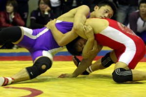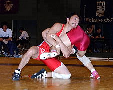 菊地は日体大でレギュラーを張ったが(左写真=2007年リーグ戦で闘う菊地)、個人タイトルに恵まれなかった。一つ上の学年には、今夏の北京五輪で銅メダルを獲得した湯元健一(現日体大助手)、同学年には2006年世界選手権銅メダルの高塚紀行(日大=現日大コーチ)、一つ下には2007年全日本選抜選手権優勝の大沢茂樹(山梨学院大)が在籍。当時のフリースタイル60s級は、学生レベルが全日本選手権と同じという超激戦区だった。