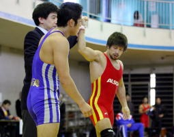 2000年シドニー五輪からオリンピック3大会連続で出場し、2007年世界選手権グレコローマン60s級銀メダリストの笹本睦(ALSOK綜合警備保障)が11月23日、全国社会人オープン選手権に出場。階級を一つ上げて66s級で優勝した(右・左下写真)。