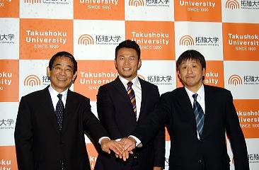 渡辺学長は「これほど多彩な能力を持ったスポーツ選手を知らない。プロの経験をアマに生かし、学生を感化させて新しい道を開いてほしい。教育とは教えるではなう、引き出すだ。学生の潜在能力を存分に引き出してほしい」とあいさつ。西口茂樹部長は「志(こころざし)が高く、チャレンジ精神を持っている。ロンドン五輪へ向けて最高の形がつくれた思う」と話した。