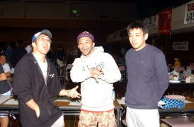 プロ格闘家が集まる大会でもある。左から朝日昇、山本KID、大石真丈の木口道場卒業生。(KIDの長男は優勝) | プロ格闘家の五味隆典が一般の部に挑戦。3位に終わったが、そのチャレンジ精神は賞賛もの(提供=本田尚基)。 |