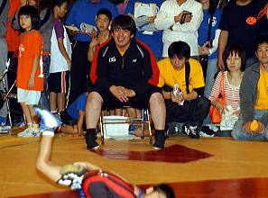 「顔が似ているから、地元ではボクまで有名になっちゃって…。悪いことできないですよ」。大阪・吹田市で行われた押立杯関西少年少女選手権で、2度の五輪の金メダリスト、吉田沙保里選手(ALSOK綜合警備保障)の兄で三重・一志ジュニアのコーチ格として参加していた吉田栄利さん(ひでとし=右写真)は、そう言って笑った。