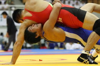 その成果は十分にあった。こん身のローリングを決めて第1ピリオドを奪取(左写真=加藤賢三をローリングで回す斎川)。第2ピリオドはスタンドで加藤の背後に回って、そのまま豪快に加藤をバック投げで投げるなど、テクニカルフォールで優勝を飾った。「初優勝したときよりもうれしいです」。国体3度目の頂点は今年の不調を吹き飛ばす会心の勝利だった。