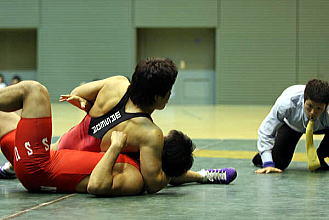 相手のしんがりは96kg級学生王者の下屋敷圭貴。浅見は本来の階級ではないものの、120s級での豊富な経験を生かしてタックルを決め、第1ピリオドを奪うと、第2ピリオドはタックル返しで鮮やかな2点。早大初優勝の白星へつなげた。「団体優勝は初めて。本当に気持ちがいいですね」と、生涯初の団体優勝を果たした浅見からは安堵の声を発した。