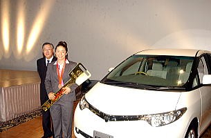 「北京オリンピック報告会」では、横原明良社長が「多くの社員がエールを送ってきた。銅メダルを取ったあとのさわやかな笑顔は、力を出し切った笑顔だったと思う。これ以上の喜びはない。世界選手権でも全従業員がバックアップしていく」と話し、報奨金とトヨタのハイブリッドカー「ESTIMA」を贈呈。指導してきた金浜良、赤石光生両コーチもステージ上に上げ、労をねぎらった。