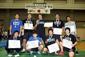 日体大がグレコローマンに続いて4階級を制した。55s級は日体大3年生の守田泰弘が準決勝、決勝と同門対決を制して初優勝。60s級も小田裕之(国士大)を準決勝で下した洞口幸太(日体大)が決勝でも松本桂(早大)ストレート勝ち。84s級は松本篤史が、96s級では下屋敷圭貴がそれぞれ初優勝した(左写真=日体大の選手たち)。
