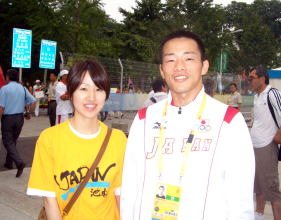 「レスリングが嫌い」と言った2年前。でも、第一線での選手生活の最後に出した結論は「好きだよ」−。北京五輪が終わったあとは、福岡大の助手としてレスリングに携わる。「たぶん、ずっとレスリングに携わっていくよ。面白いし」。2大会連続五輪戦士という誇りを持って、池松は次世代の金メダリストたちに夢を与え続けていく−。(右写真=試合後、応援に駆け付けた新妻の由紀さんとともに)