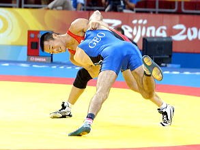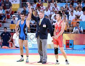 日本レスリングチームのしんがりとして北京五輪のマットに登場した池松。「日本男子勢から20年ぶりの金メダルを」という富山英明強化委員長の悲願は、大会6日目を終わってまだ達成していなかった。金メダルの可能性は池松に託される状況での登場だった。